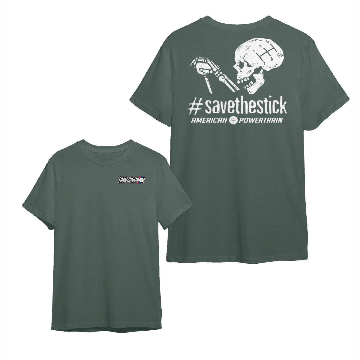 American Powertrain Save The Stick Skeleton T-shirt, Car Lover Racing Tee, Speed Style & Performance Summer Shirt Menswear