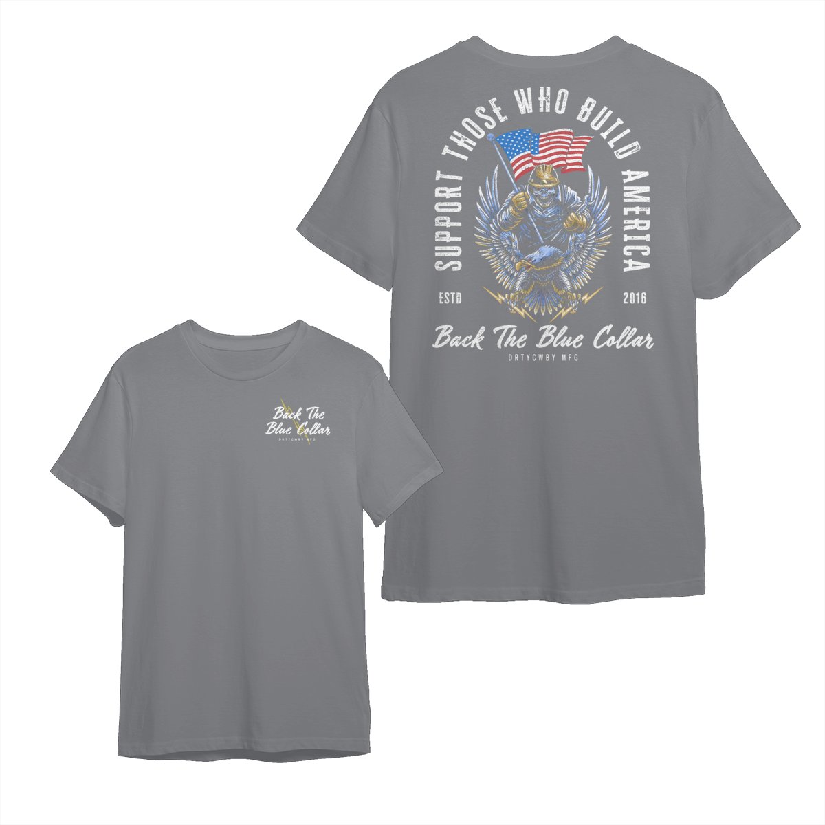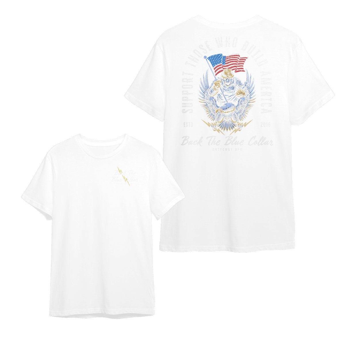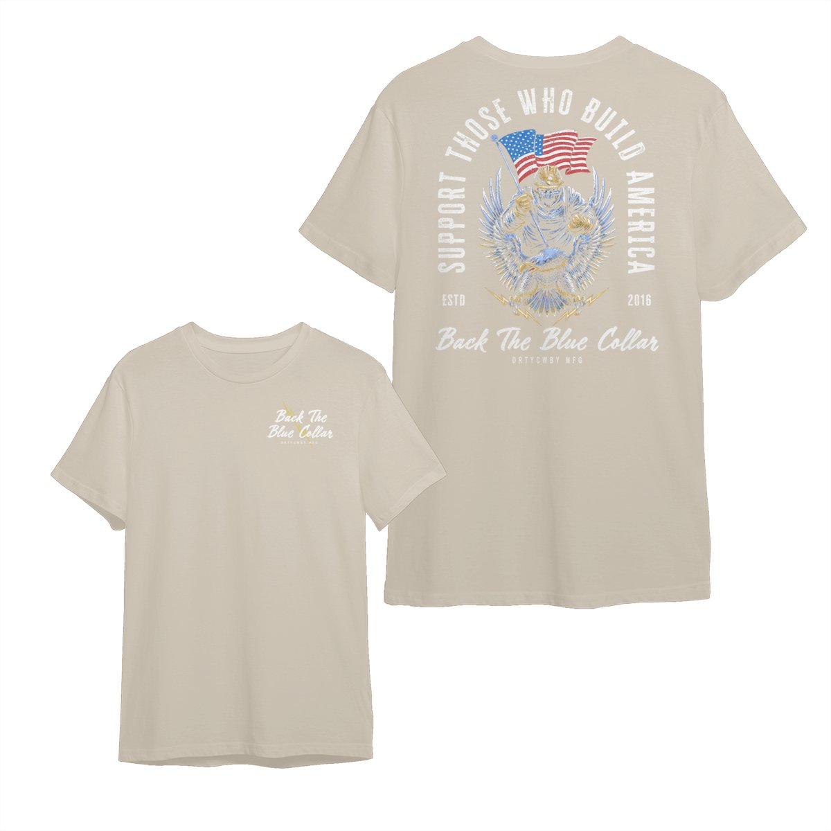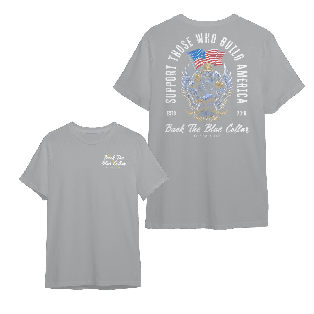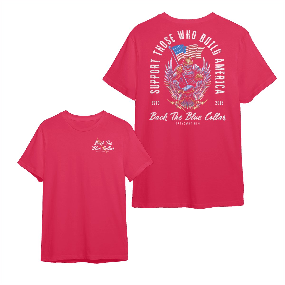 Are you looking for some special gift Back The Blue Collar Men’s T-Shirt, Perfect Gift For Dad, Patriotic Dad Shirt, Top Menswear for your friends, your father, your mother, son, boyfriend, girlfriend? We have this idea for you. This product Back The Blue Collar Men’s T-Shirt, Perfect Gift For Dad, Patriotic Dad Shirt, Top Menswear is perfect for you. Our T-shirt made of ringspun cotton for smoothness and body, and added rayon and polyester for extra stretch, drape, and breathability, this will be your new favorite t-shirt.