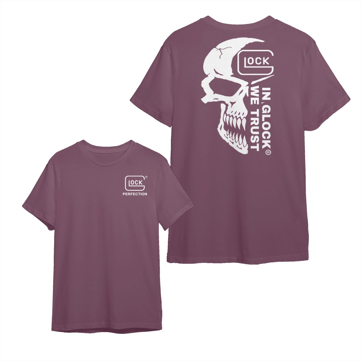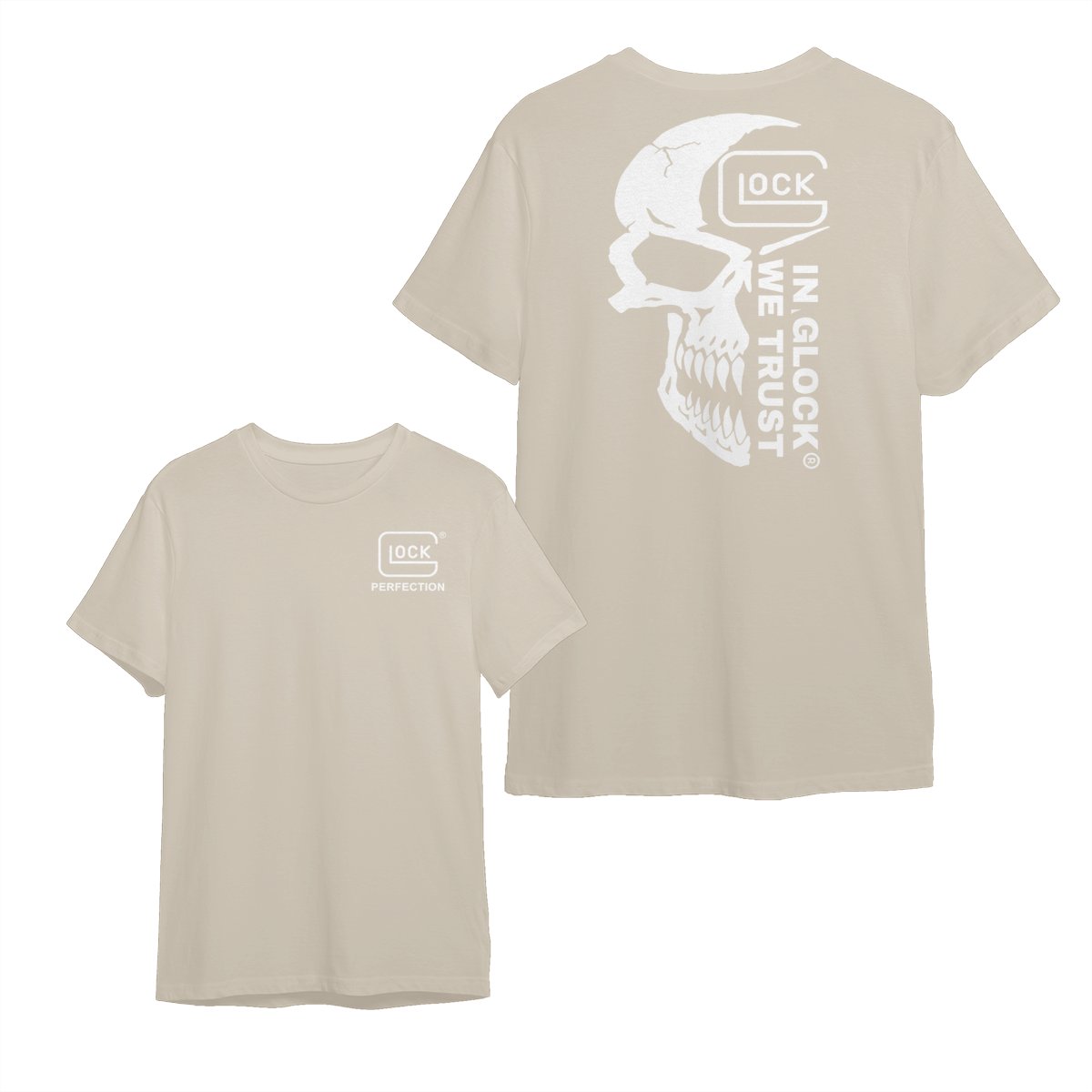 Are you looking for some special gift In Glock We Trust Skull 2 Sided T-Shirt, Tactical Gear for Gun Lovers, Unisex Cotton Hoodie for your friends, your father, your mother, son, boyfriend, girlfriend? We have this idea for you. This product In Glock We Trust Skull 2 Sided T-Shirt, Tactical Gear for Gun Lovers, Unisex Cotton Hoodie is perfect for you. Our T-shirt made of ringspun cotton for smoothness and body, and added rayon and polyester for extra stretch, drape, and breathability, this will be your new favorite t-shirt.