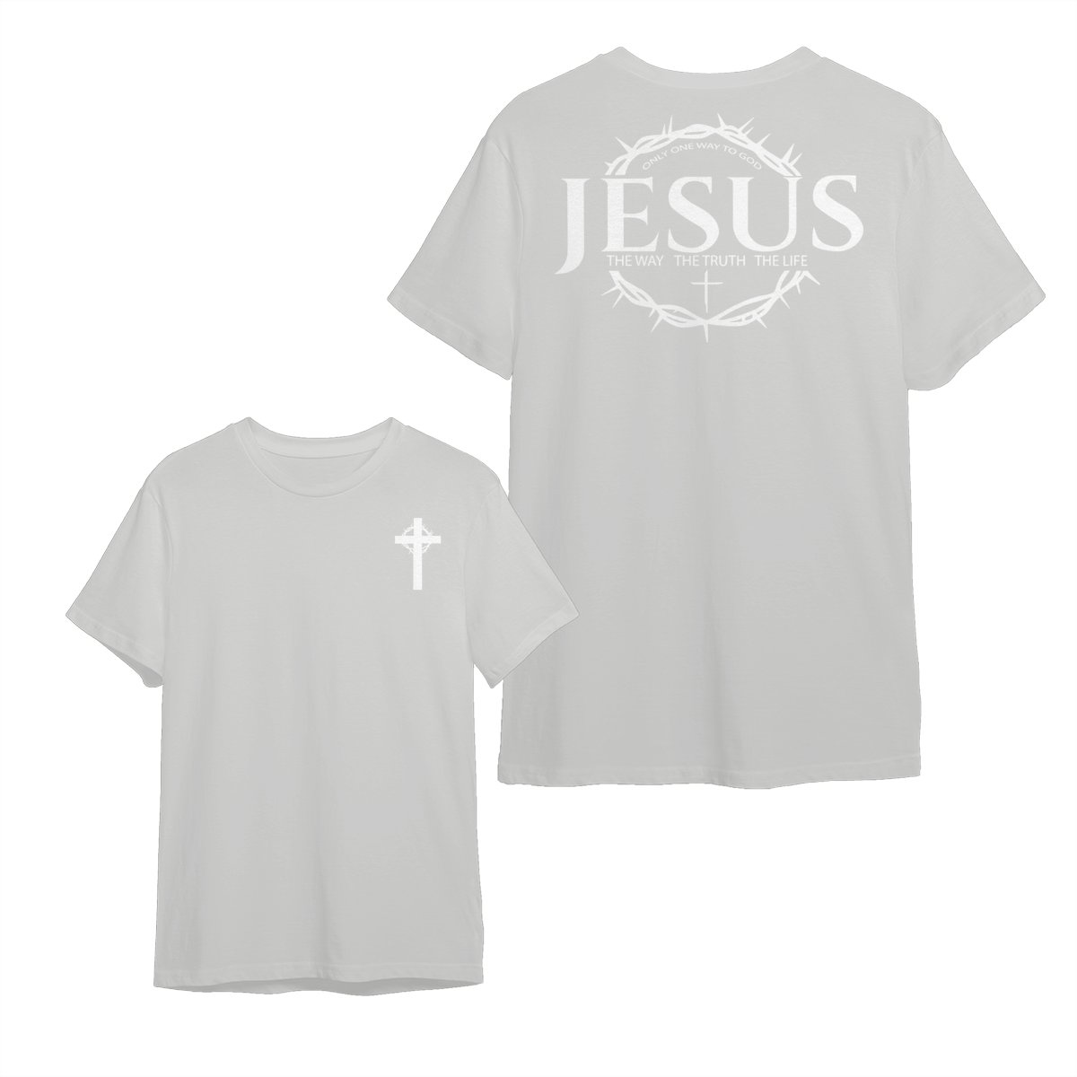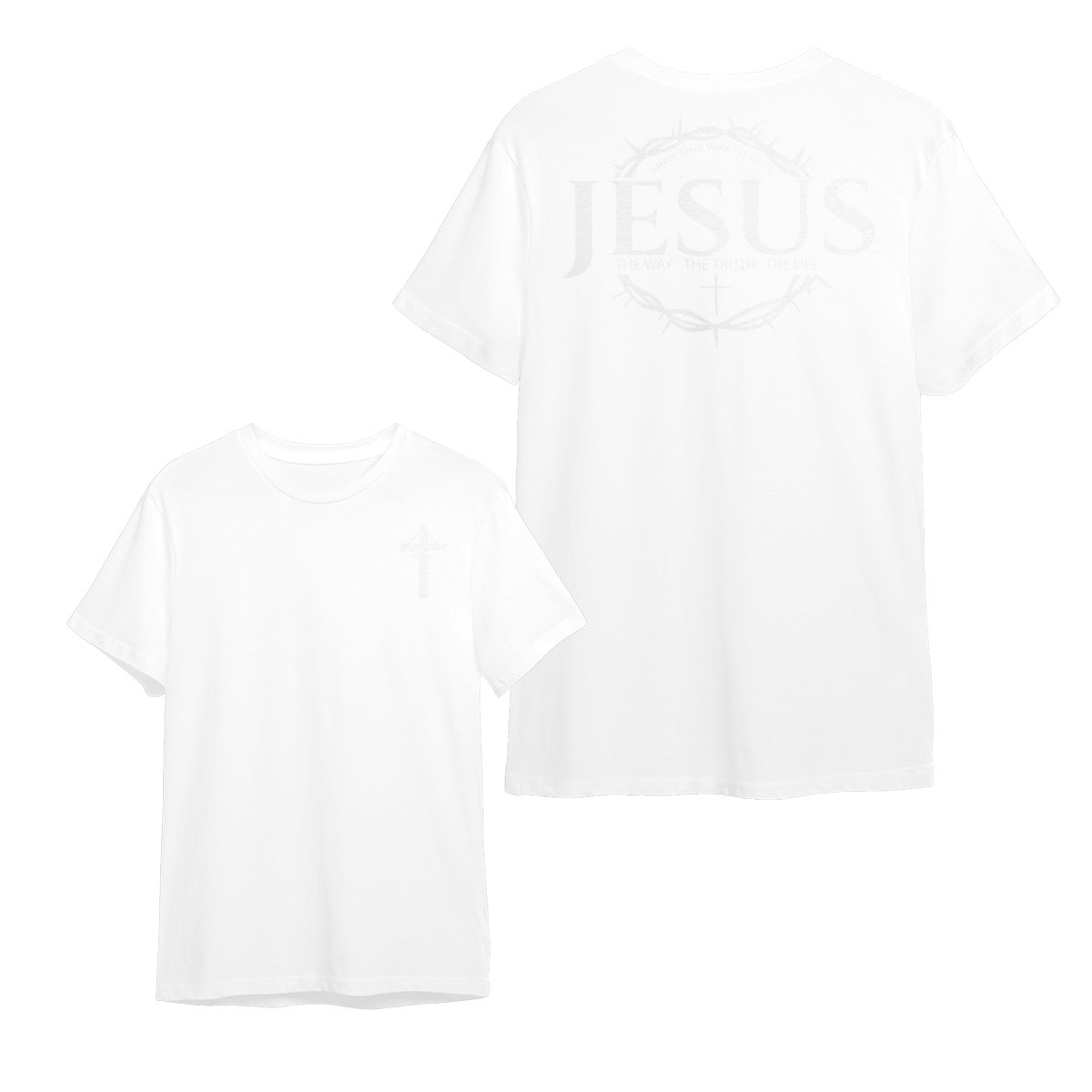 Jesus The Way The Truth The Life Scripture T-shirt, Crown of Thorns & Cross Graphic, Faith-Based Unisex Cotton Shirt, Comfortable Christian Top