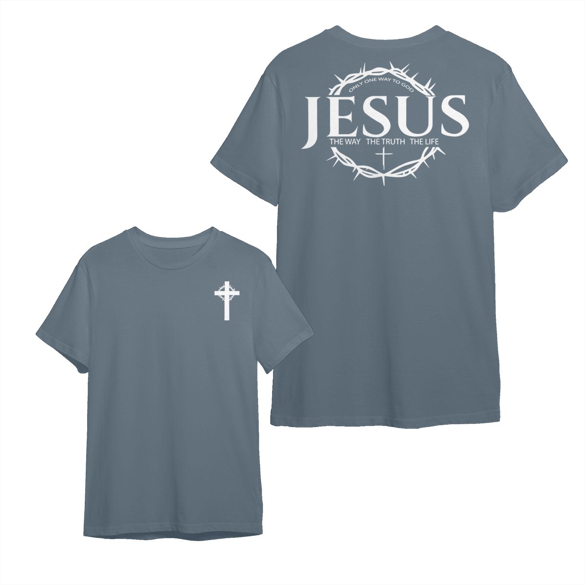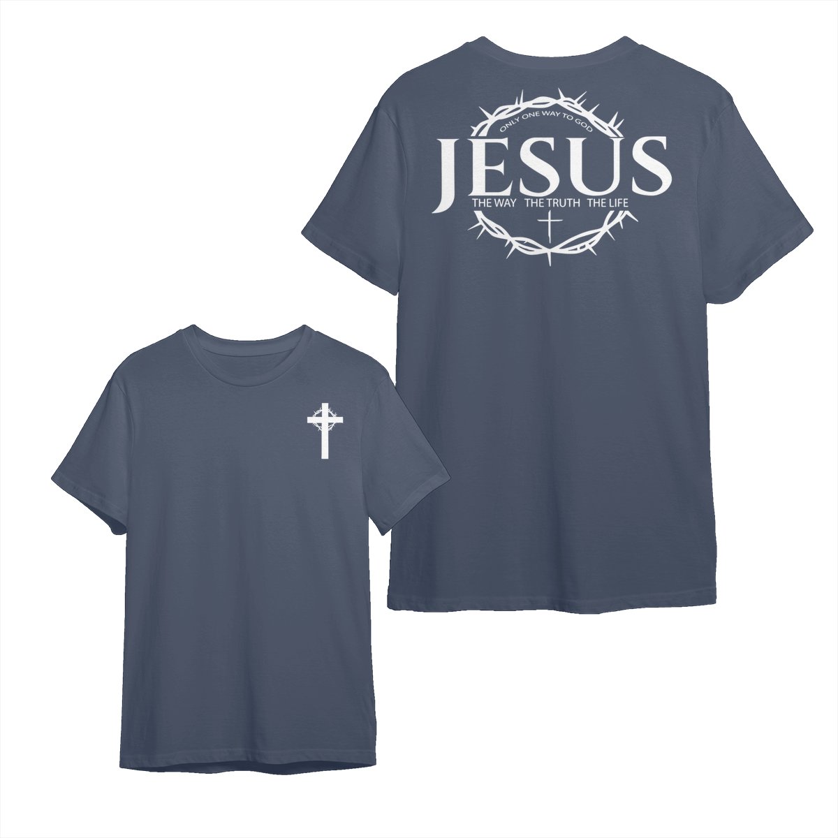 Jesus The Way The Truth The Life Scripture T-shirt, Crown of Thorns & Cross Graphic, Faith-Based Unisex Cotton Shirt, Comfortable Christian Top