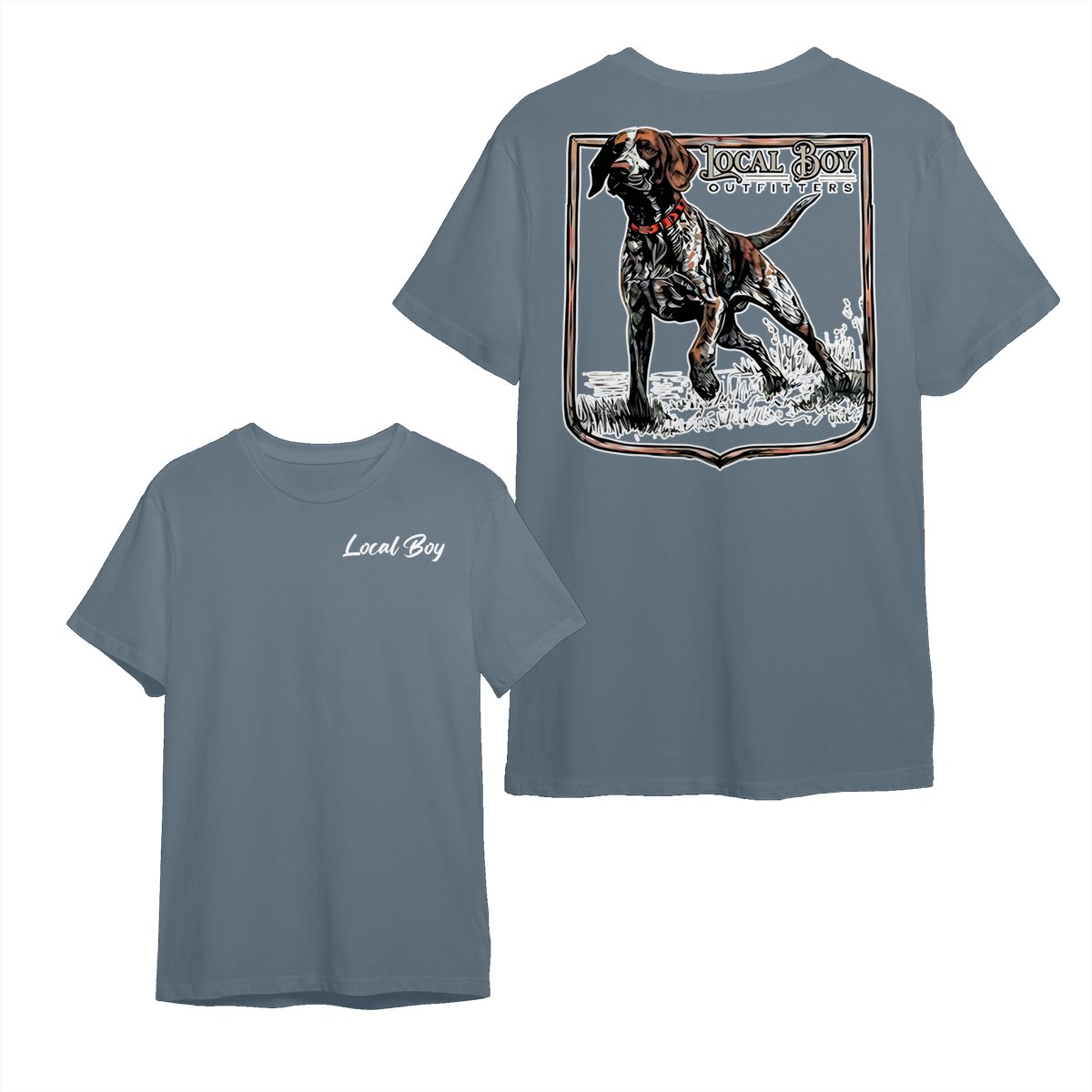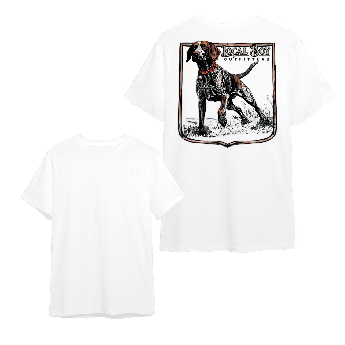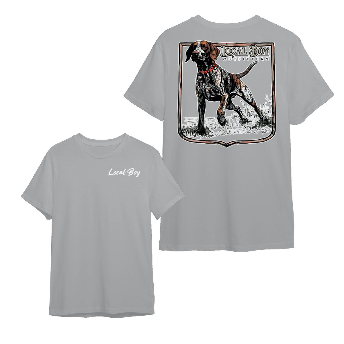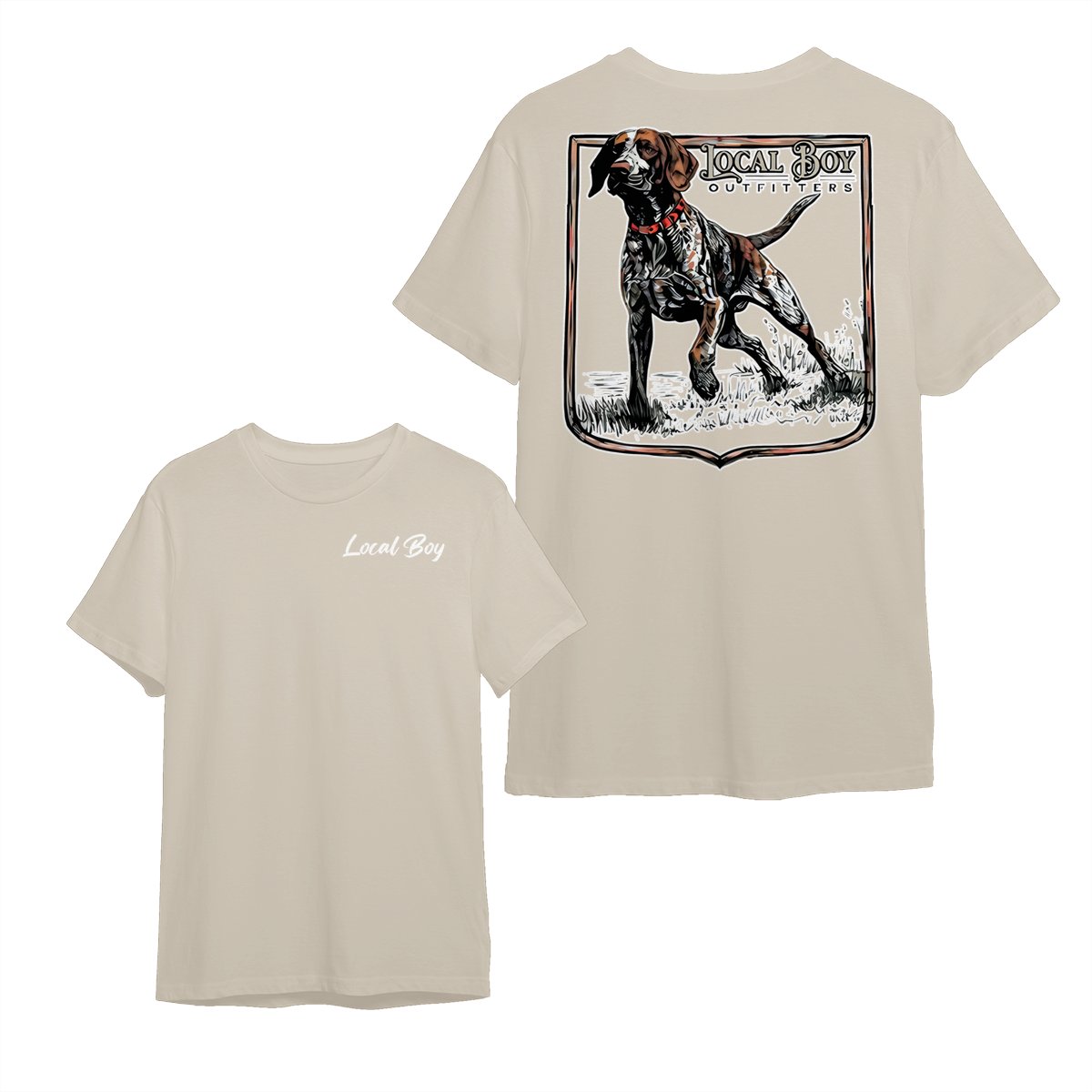 Local Boy Outfitters T-shirt Stylish Hunting Dog Graphic for Outdoor Enthusiasts, Ideal for Hunting Trips and Outdoor Activities T-shirt, Sweatshirt