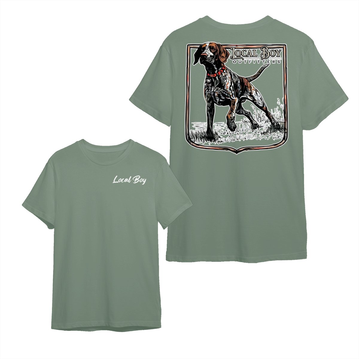 Local Boy Outfitters T-shirt Stylish Hunting Dog Graphic for Outdoor Enthusiasts, Ideal for Hunting Trips and Outdoor Activities T-shirt, Sweatshirt