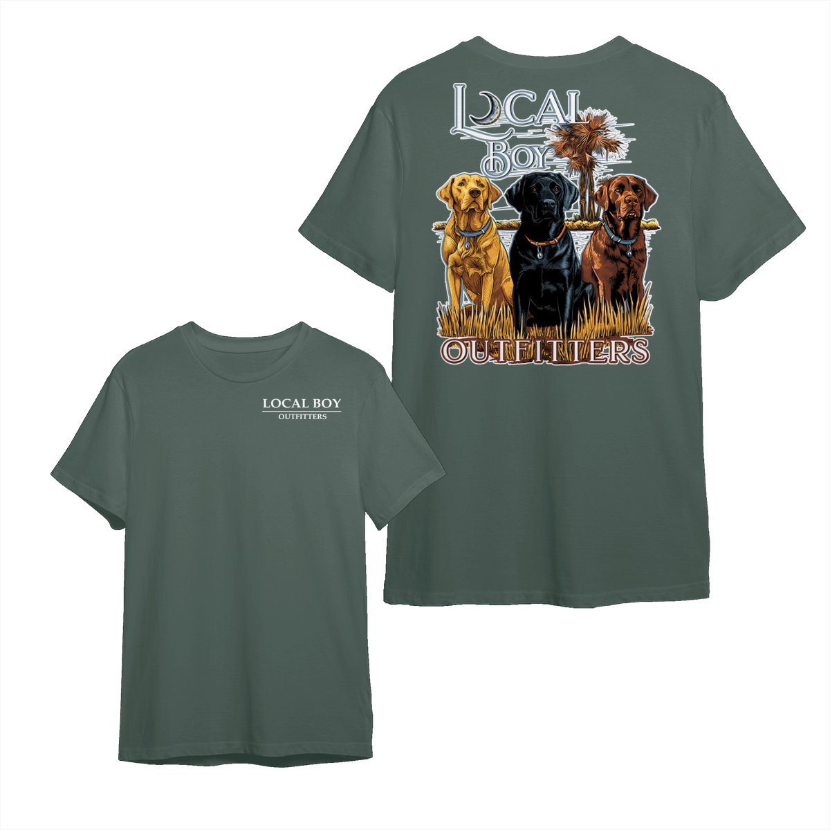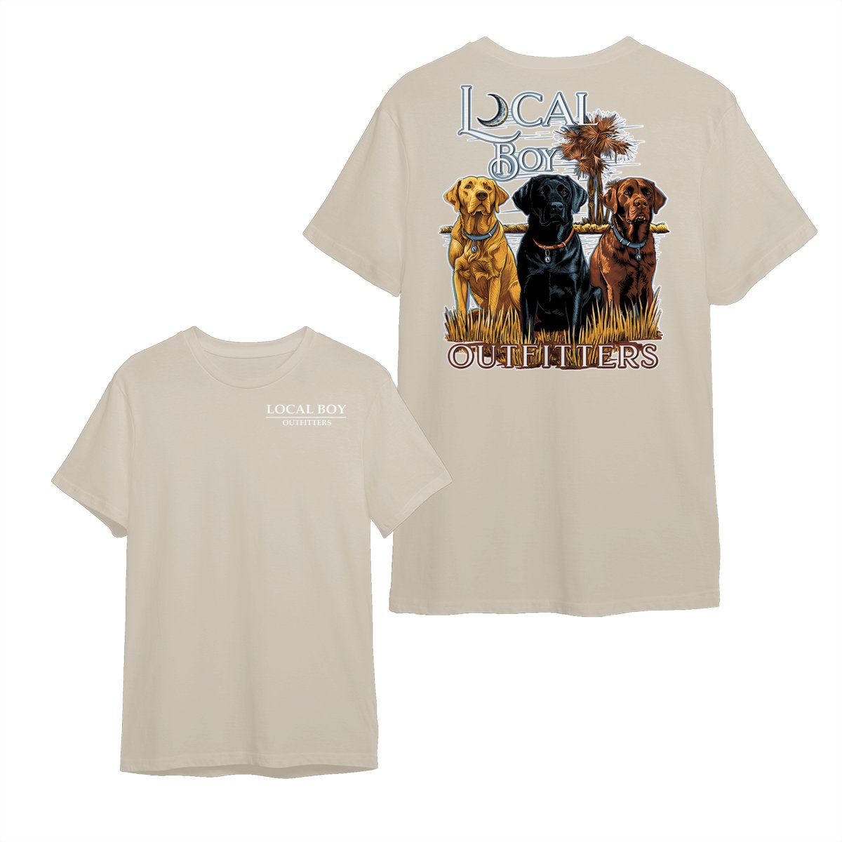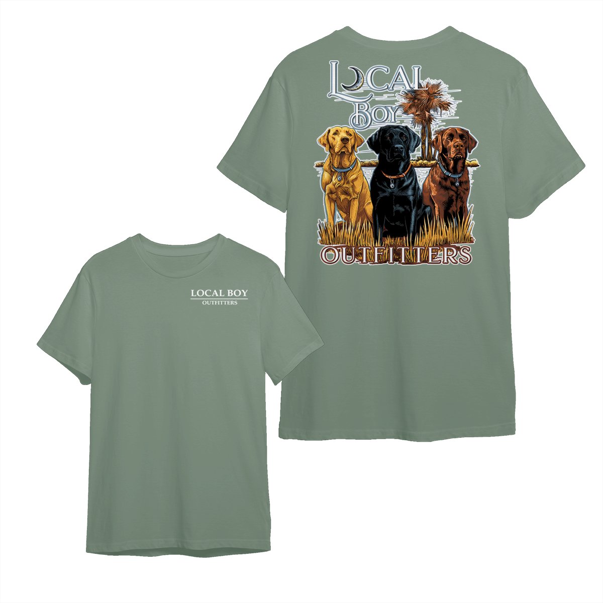 Local Boy Outfitters T-shirt, Trio of Labrador Retrievers Shirt, Ideal for Dog Lovers and Hunting Enthusiasts, Graphic Sweatshirt For Hunting Fans