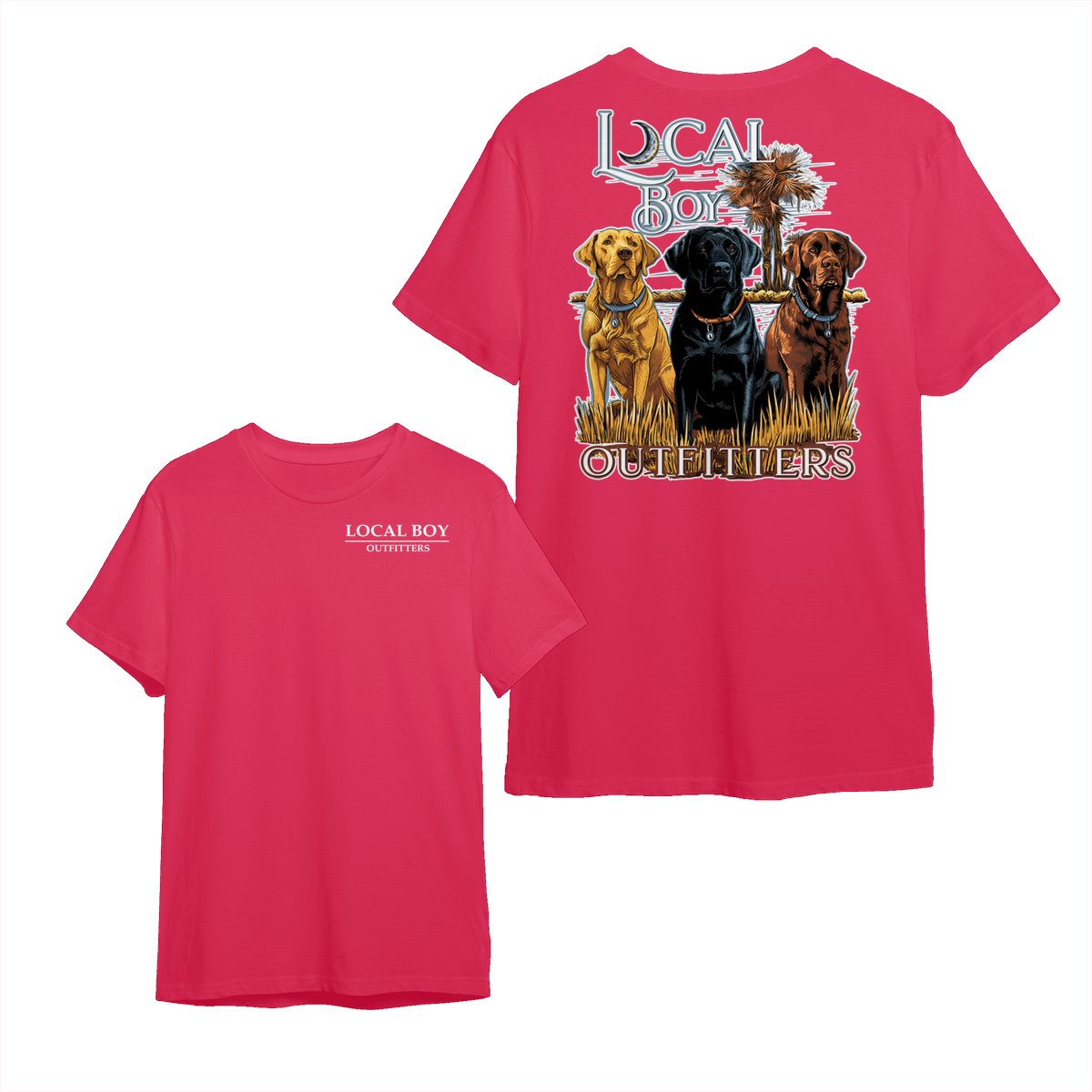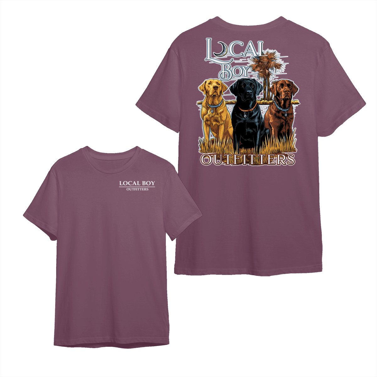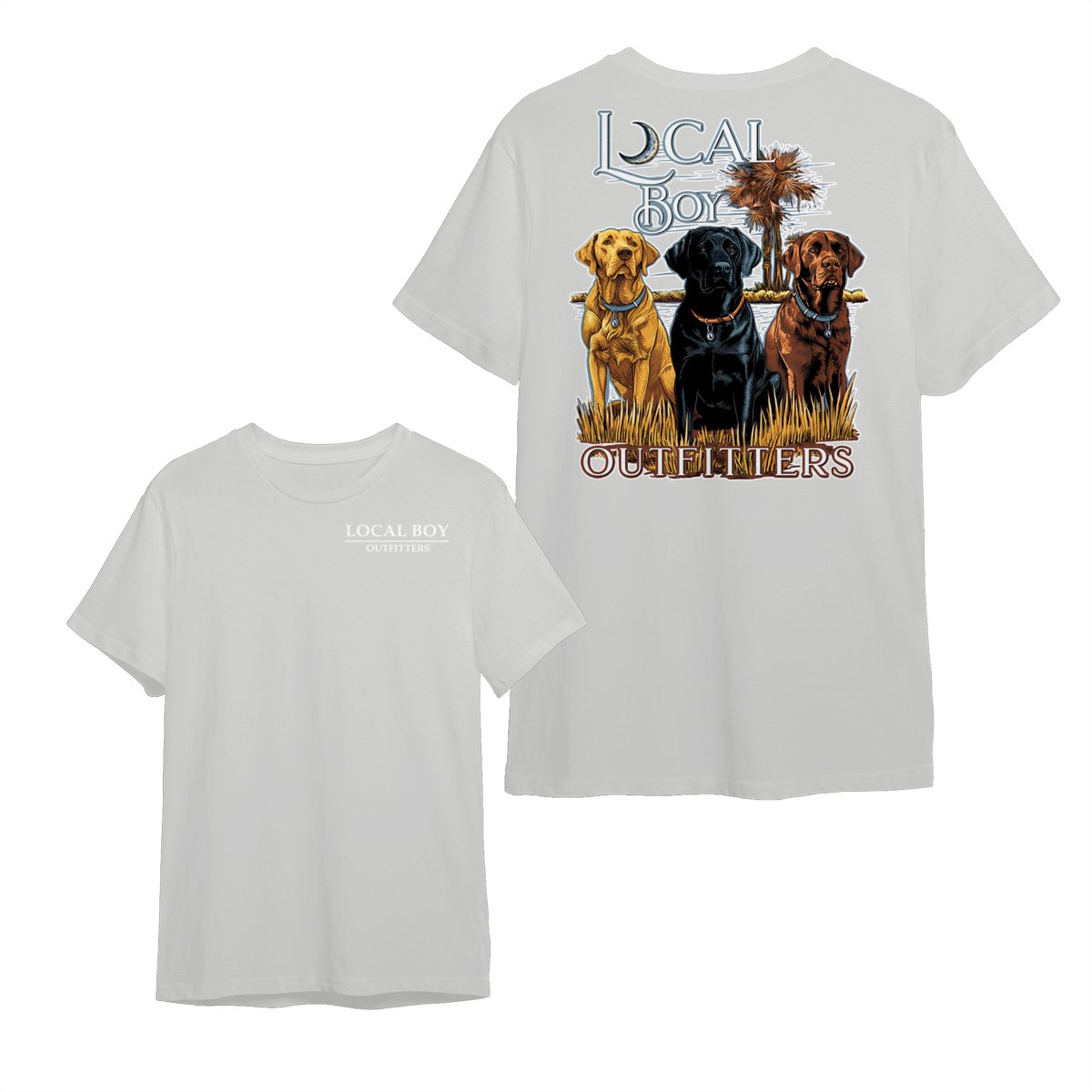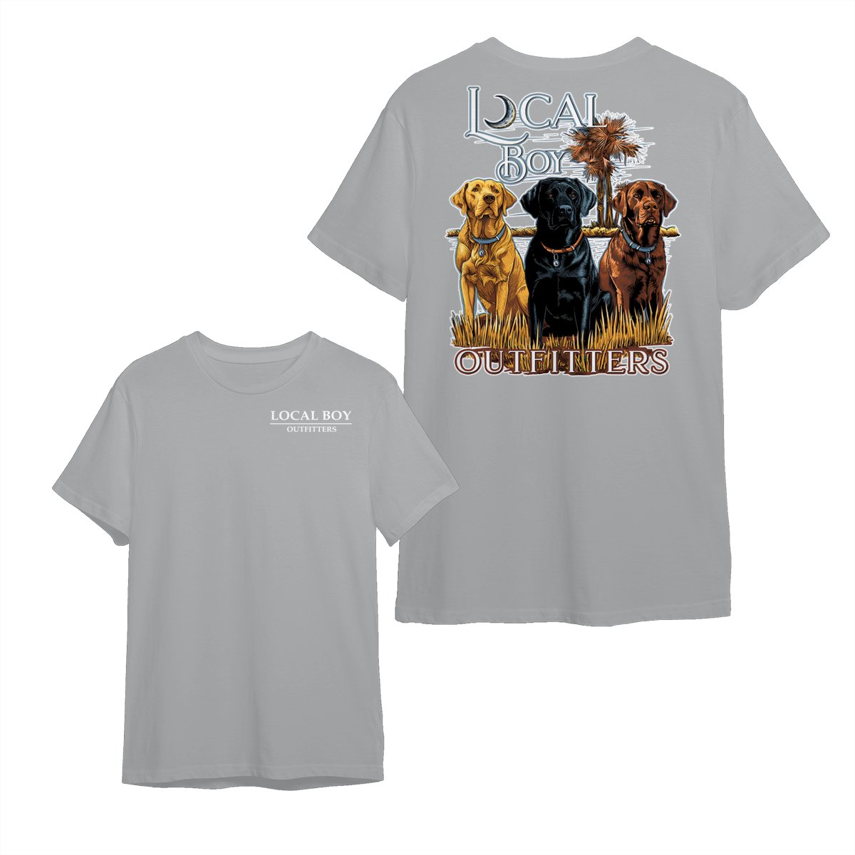 Local Boy Outfitters T-shirt, Trio of Labrador Retrievers Shirt, Ideal for Dog Lovers and Hunting Enthusiasts, Graphic Sweatshirt For Hunting Fans