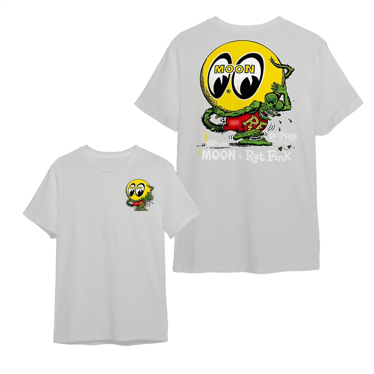 Are you looking for some special gift Mooneyes x Rat Fink Traditional T-Shirt Hot Rod Tee Vintage Racing Classic Tee 90s Styled Menswear Top for your friends, your father, your mother, son, boyfriend, girlfriend? We have this idea for you. This product Mooneyes x Rat Fink Traditional T-Shirt Hot Rod Tee Vintage Racing Classic Tee 90s Styled Menswear Top is perfect for you. Our T-shirt made of ringspun cotton for smoothness and body, and added rayon and polyester for extra stretch, drape, and breathability, this will be your new favorite t-shirt.