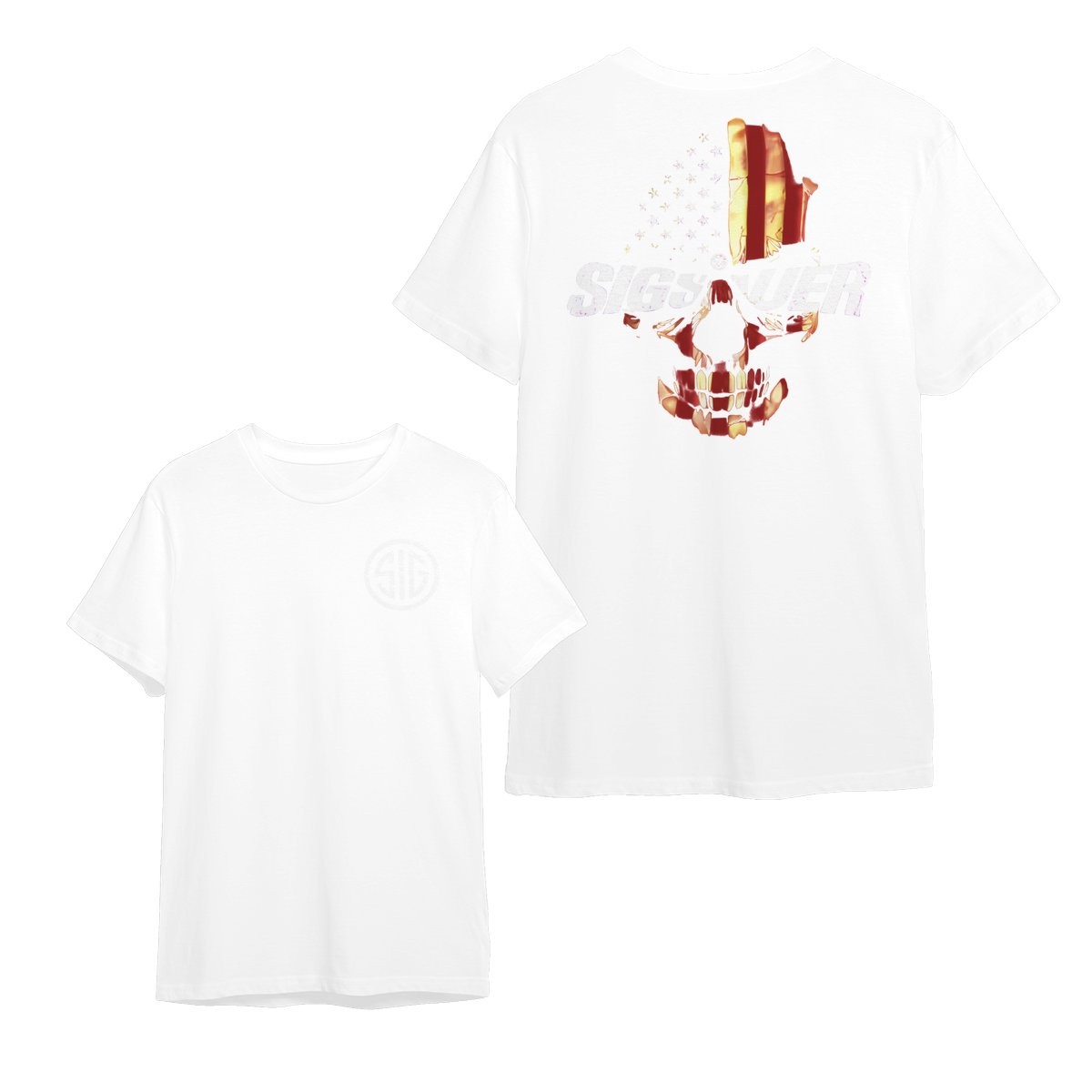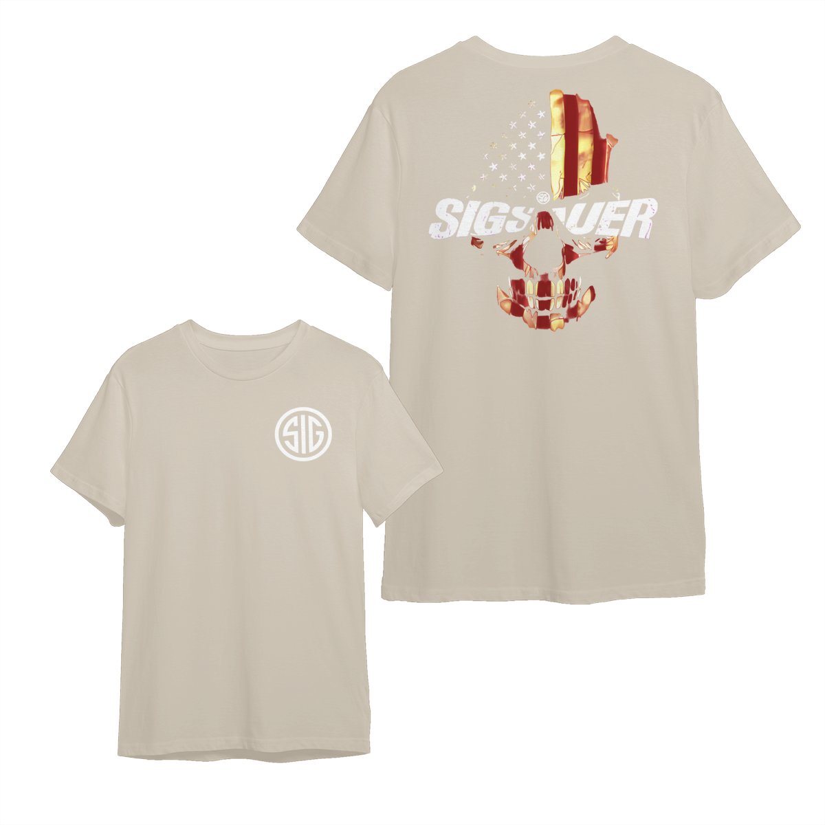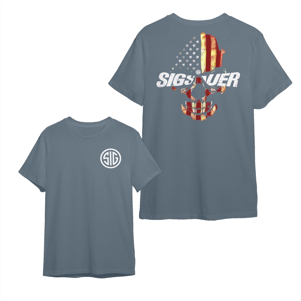 Are you looking for some special gift Sig Sauer Skull Flag 2 Sided Hoodie, Military Cotton Tee, Unisex Short Sleeve Casual Wear for your friends, your father, your mother, son, boyfriend, girlfriend? We have this idea for you. This product Sig Sauer Skull Flag 2 Sided Hoodie, Military Cotton Tee, Unisex Short Sleeve Casual Wear is perfect for you. Our T-shirt made of ringspun cotton for smoothness and body, and added rayon and polyester for extra stretch, drape, and breathability, this will be your new favorite t-shirt.
