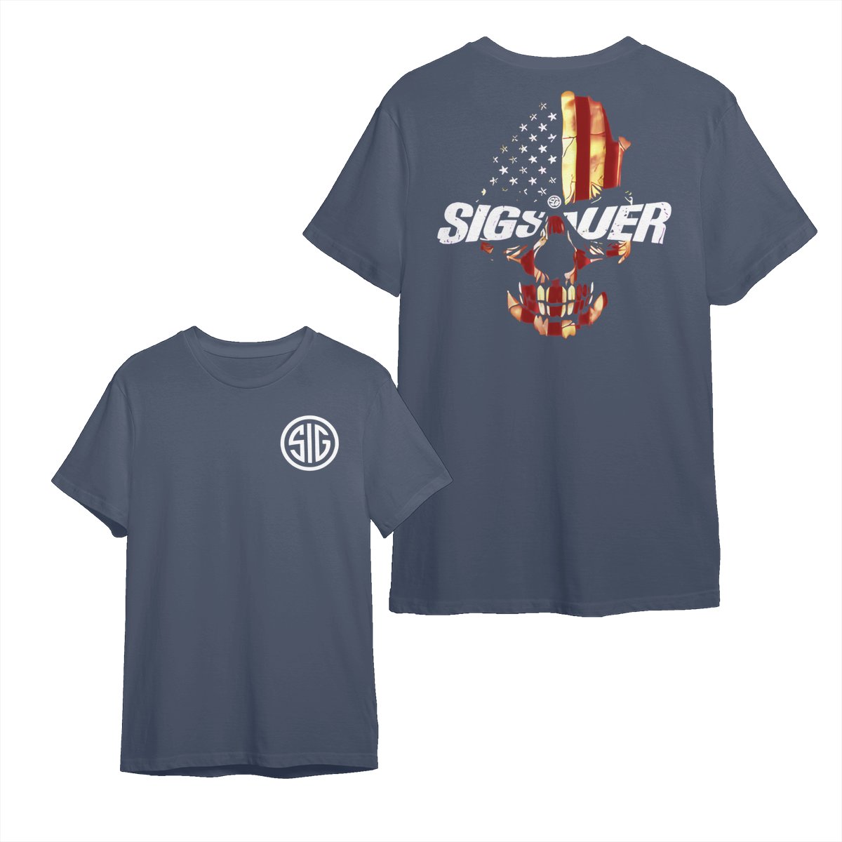 Are you looking for some special gift Sig Sauer Skull Flag 2 Sided Hoodie, Military Cotton Tee, Unisex Short Sleeve Casual Wear for your friends, your father, your mother, son, boyfriend, girlfriend? We have this idea for you. This product Sig Sauer Skull Flag 2 Sided Hoodie, Military Cotton Tee, Unisex Short Sleeve Casual Wear is perfect for you. Our T-shirt made of ringspun cotton for smoothness and body, and added rayon and polyester for extra stretch, drape, and breathability, this will be your new favorite t-shirt.