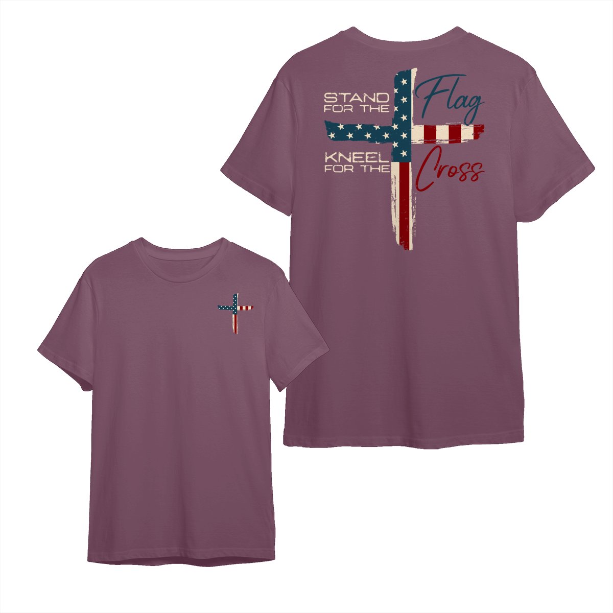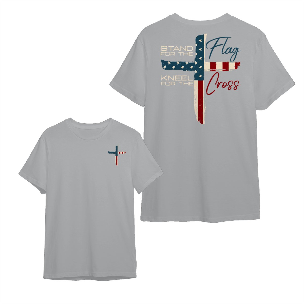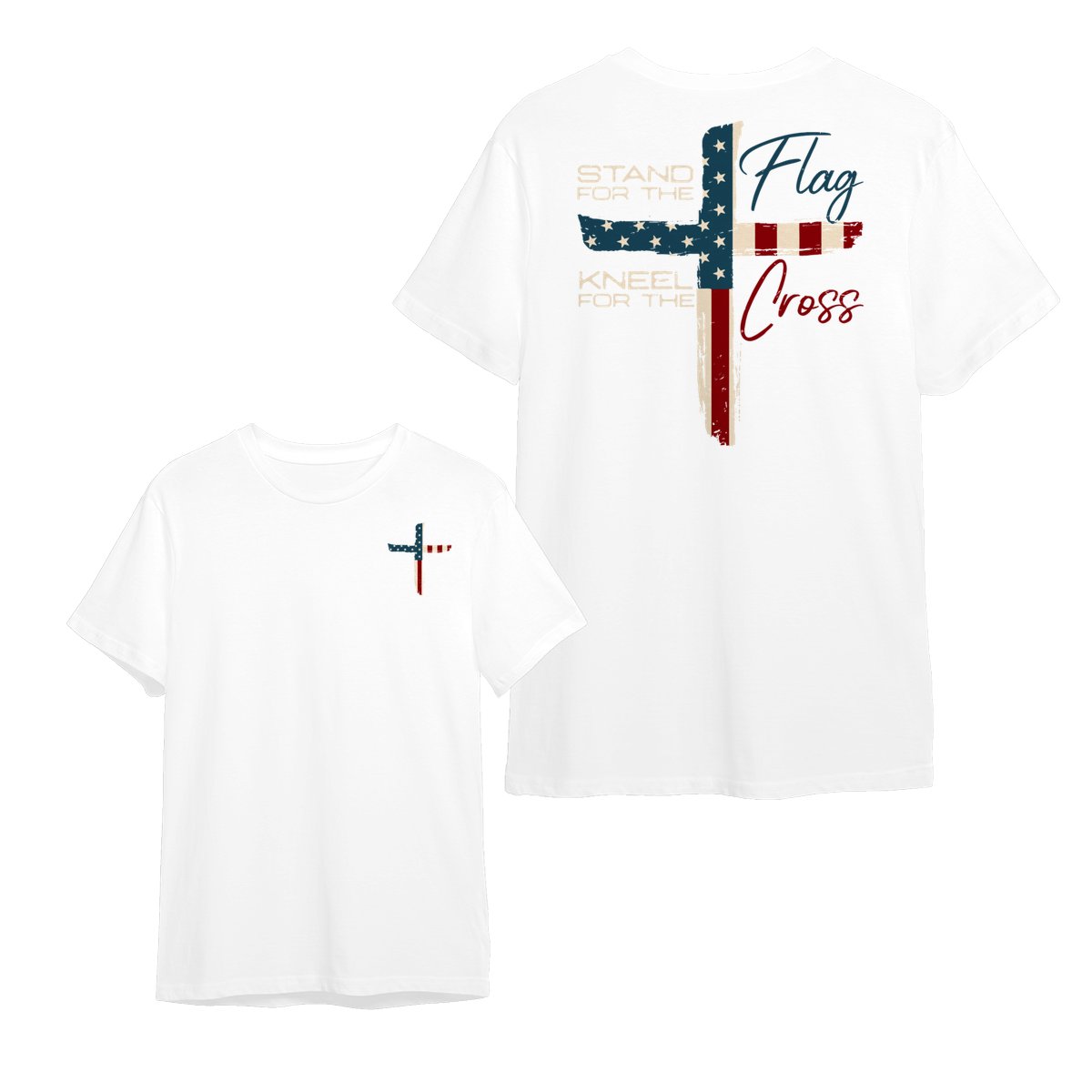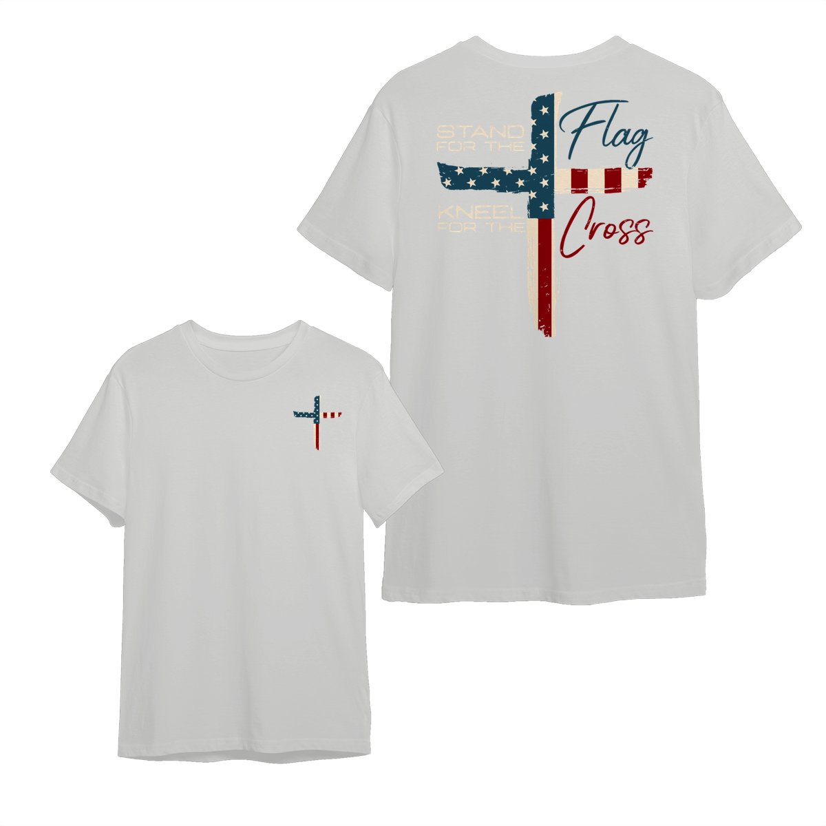 Are you looking for some special gift Stand for the Flag Kneel for the Cross T-Shirt, American Christian Faith Tee, Patriotic Grunge Cross Shirt, Unisex Soft Cotton Top for your friends, your father, your mother, son, boyfriend, girlfriend? We have this idea for you. This product Stand for the Flag Kneel for the Cross T-Shirt, American Christian Faith Tee, Patriotic Grunge Cross Shirt, Unisex Soft Cotton Top is perfect for you. Our T-shirt made of ringspun cotton for smoothness and body, and added rayon and polyester for extra stretch, drape, and breathability, this will be your new favorite t-shirt.