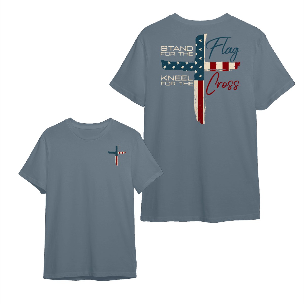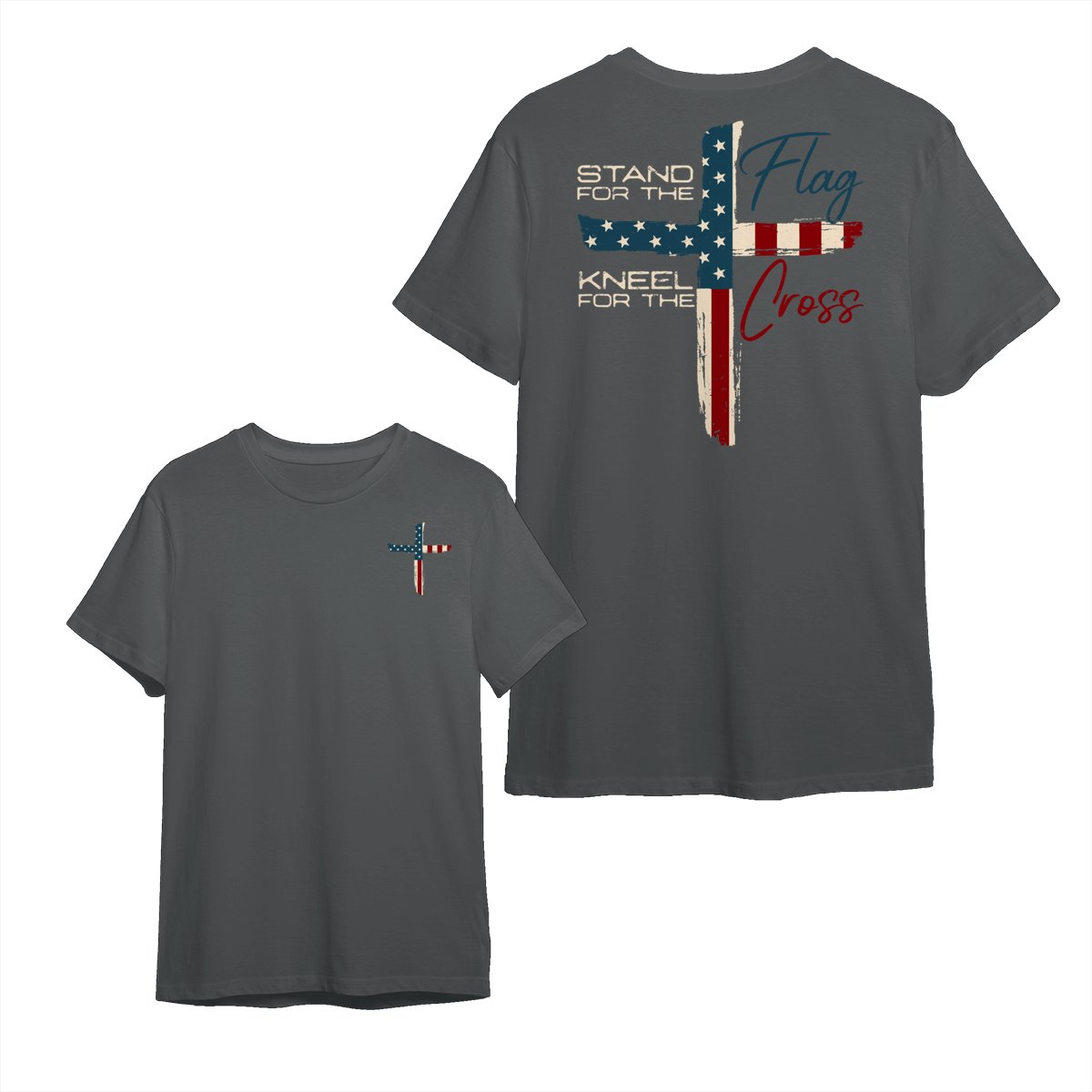 Are you looking for some special gift Stand for the Flag Kneel for the Cross T-Shirt, American Christian Faith Tee, Patriotic Grunge Cross Shirt, Unisex Soft Cotton Top for your friends, your father, your mother, son, boyfriend, girlfriend? We have this idea for you. This product Stand for the Flag Kneel for the Cross T-Shirt, American Christian Faith Tee, Patriotic Grunge Cross Shirt, Unisex Soft Cotton Top is perfect for you. Our T-shirt made of ringspun cotton for smoothness and body, and added rayon and polyester for extra stretch, drape, and breathability, this will be your new favorite t-shirt.