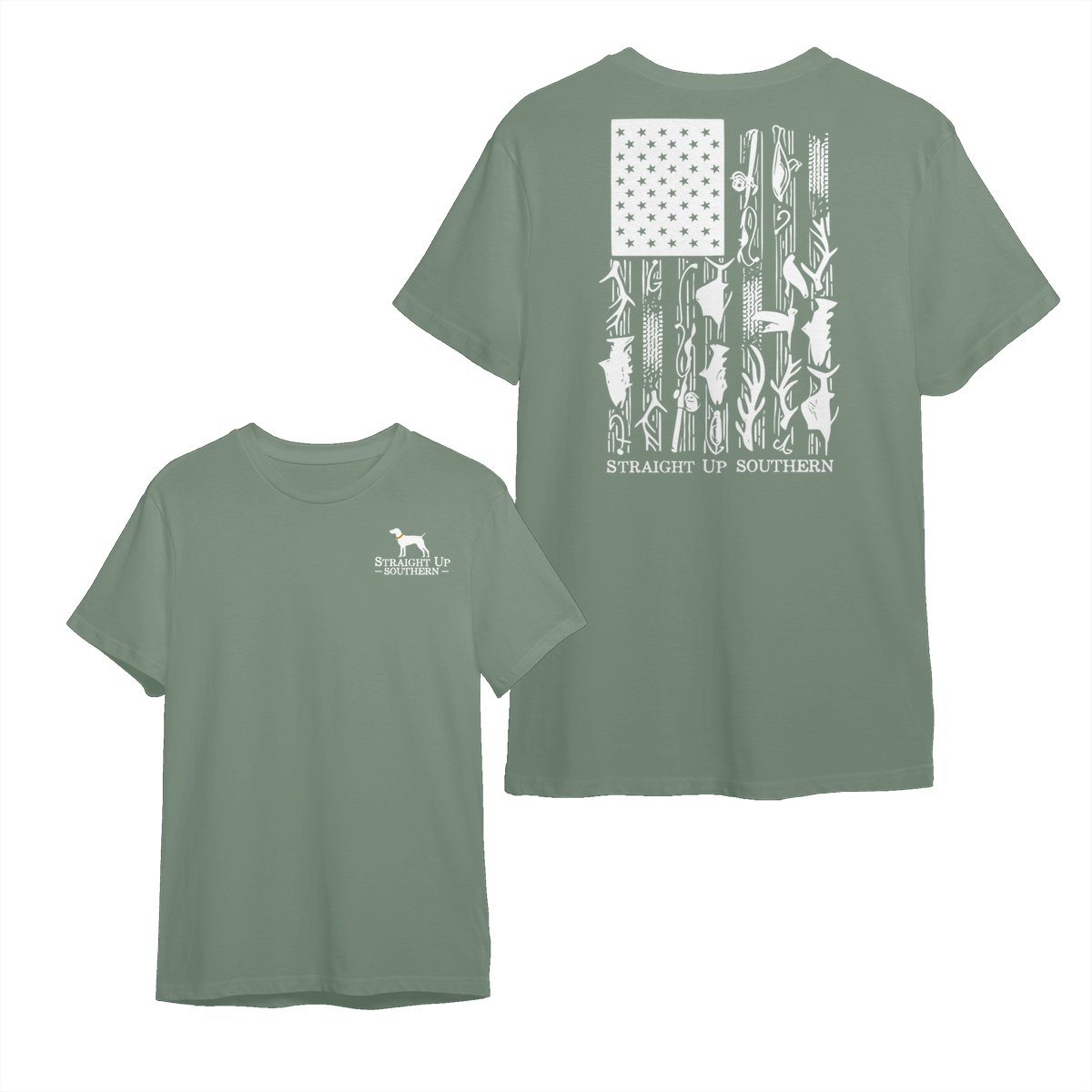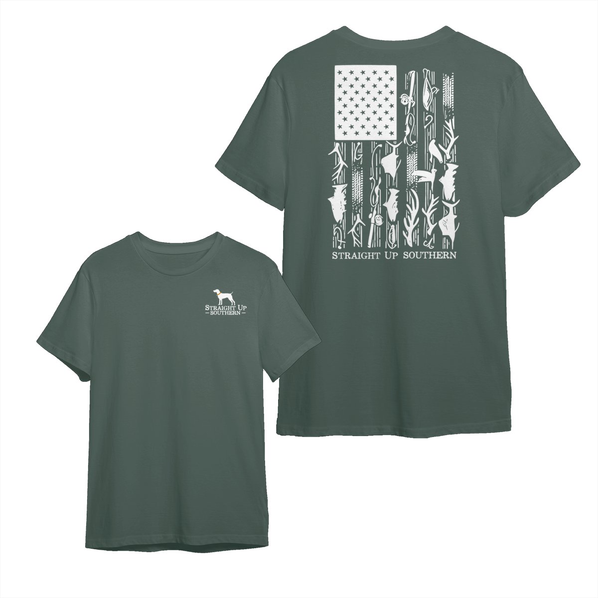 Straight Up Southern T-shirt – Patriotic American Flag Design Featuring Hunting and Outdoor, Perfect for Southern Lifestyle Enthusiasts and Hunters