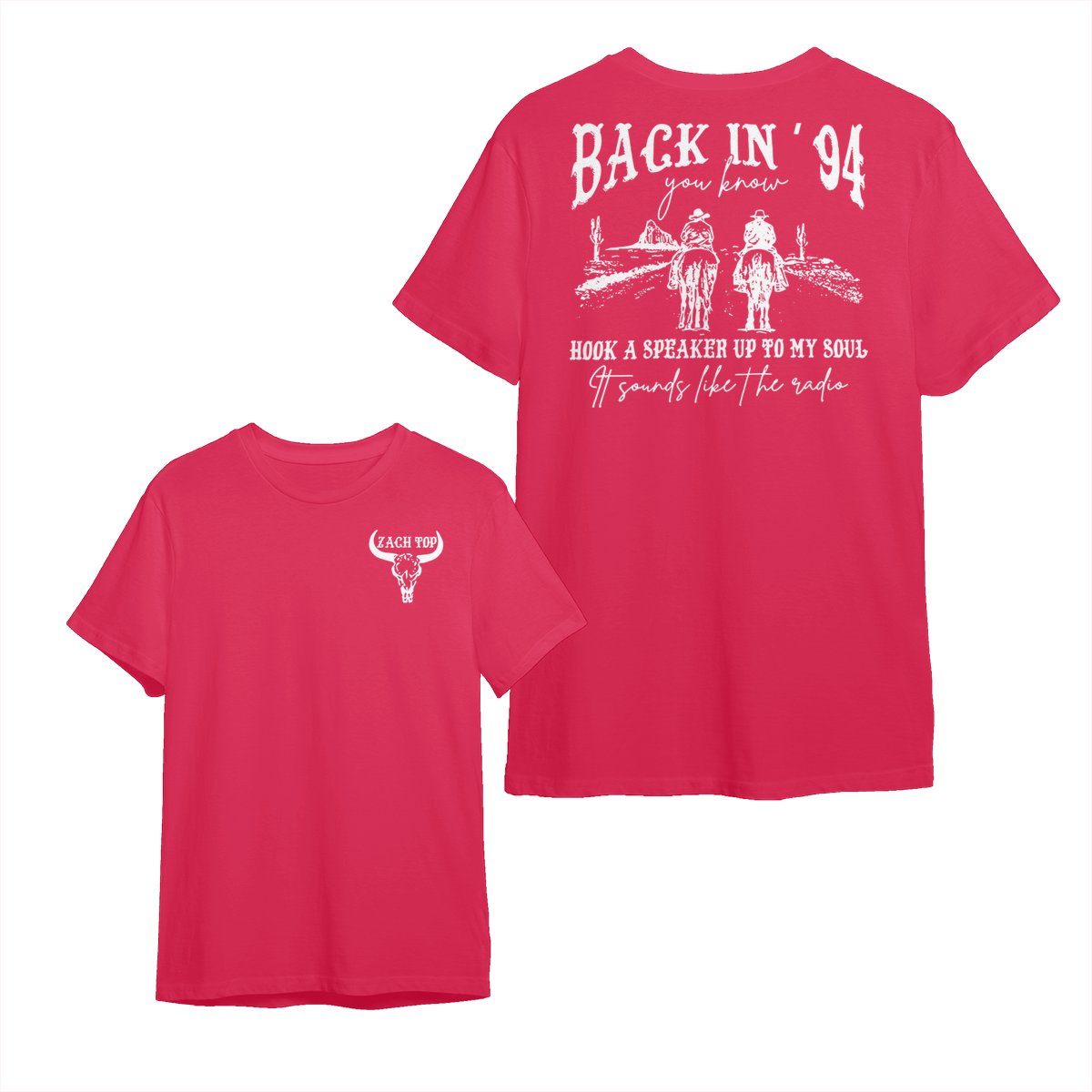 Are you looking for some special gift Zachh Top Back In 94 Shirt, Country Music Sweater, Tour Merch, Concert Clothing, Unisex Tshirt for your friends, your father, your mother, son, boyfriend, girlfriend? We have this idea for you. This product Zachh Top Back In 94 Shirt, Country Music Sweater, Tour Merch, Concert Clothing, Unisex Tshirt is perfect for you. Our T-shirt made of ringspun cotton for smoothness and body, and added rayon and polyester for extra stretch, drape, and breathability, this will be your new favorite t-shirt.